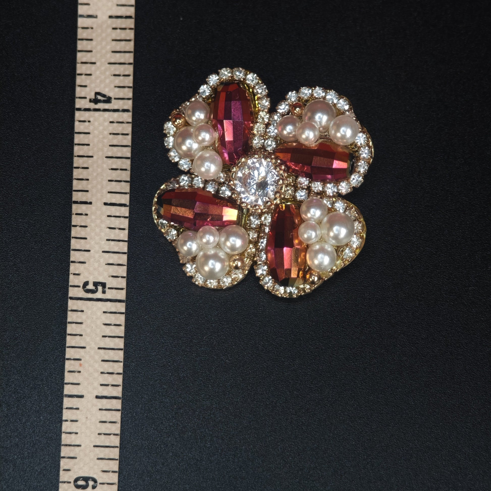 Handcrafted with faceted glass crystals, soft pearl clusters, and delicate gold accents, each petal reflects a blend of warmth and brilliance — like sparks of light captured in bloom.