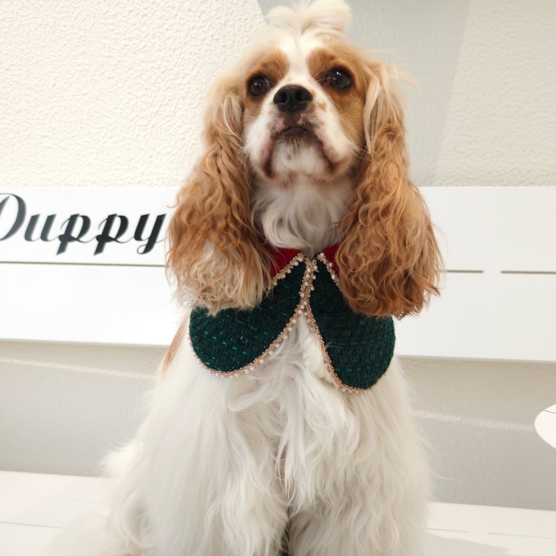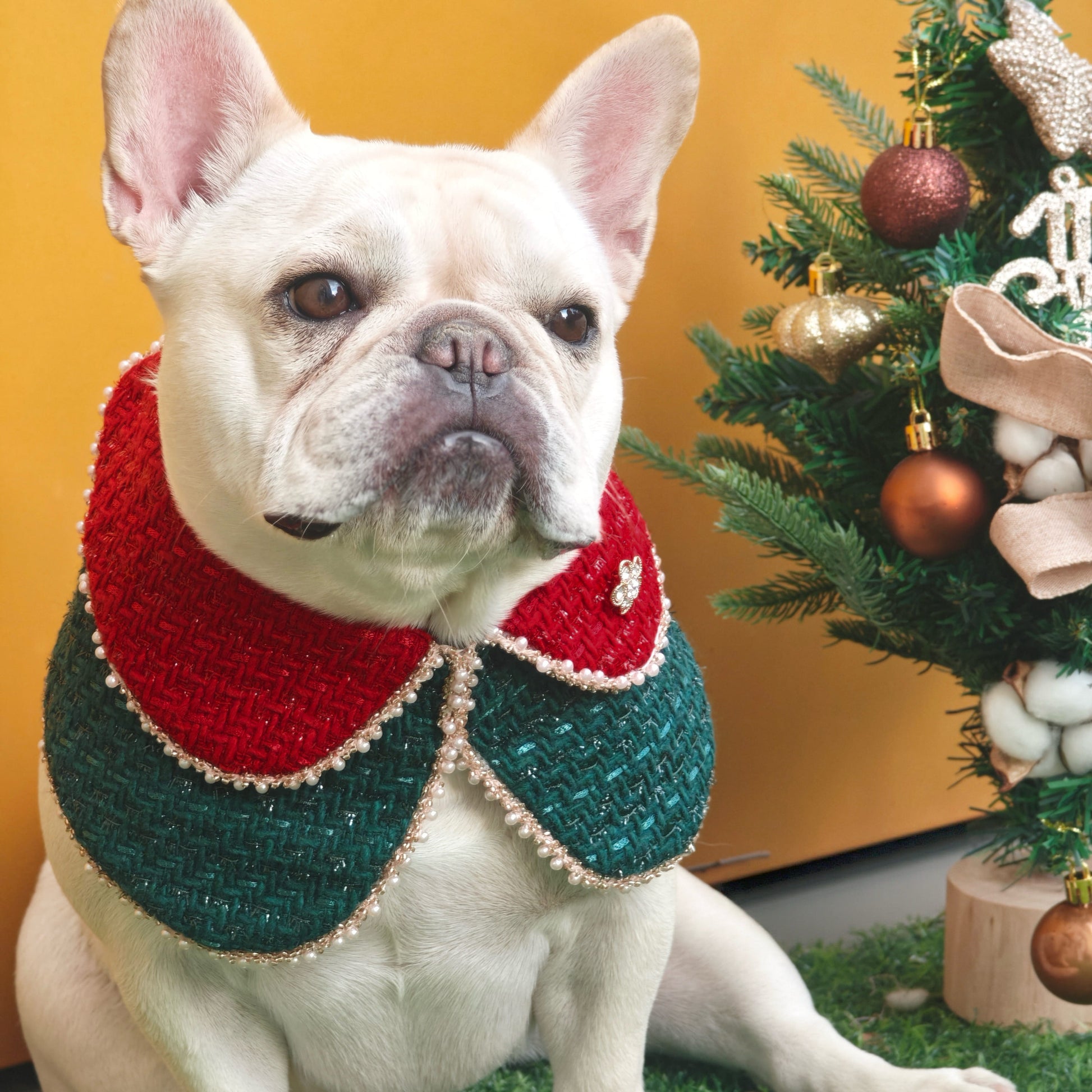 Celebrate the magic of Christmas with the Avery Handmade Red & Green Bandana, designed for both dogs and cats. Adorned with delicate pearls and a charming interchangeable brooch, this festive piece blends elegance and holiday cheer. Easy to wear with a soft Velcro closure, it’s perfect for Christmas gatherings, family photos, and joyful parties.