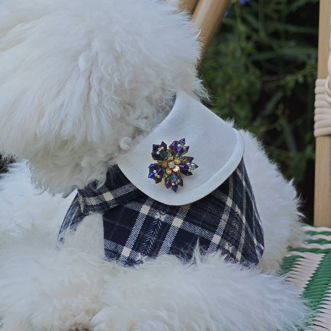 Midnight Frost – Blue Crystal Snowflake Brooch for Dogs | Winter Elegance Accent