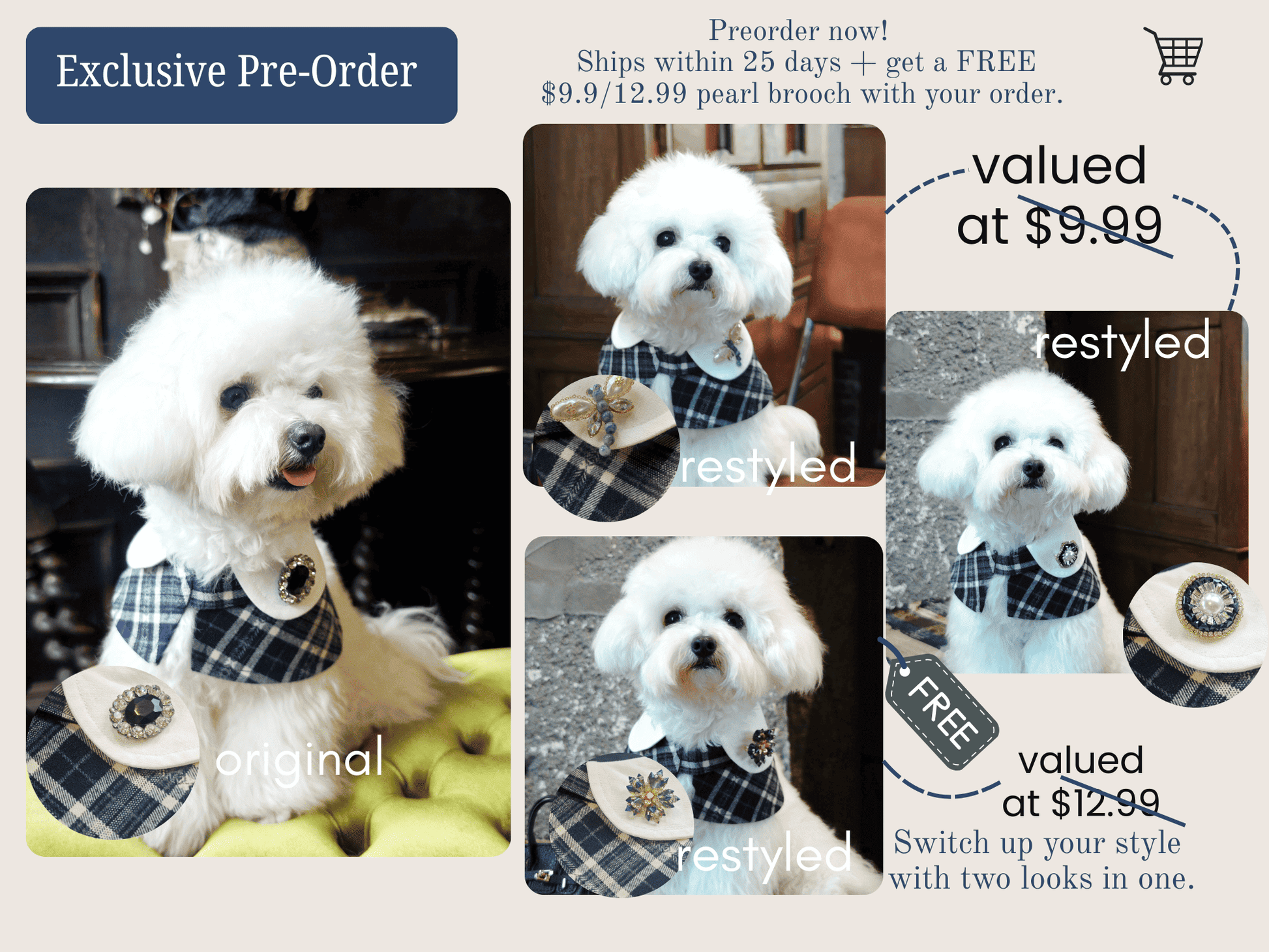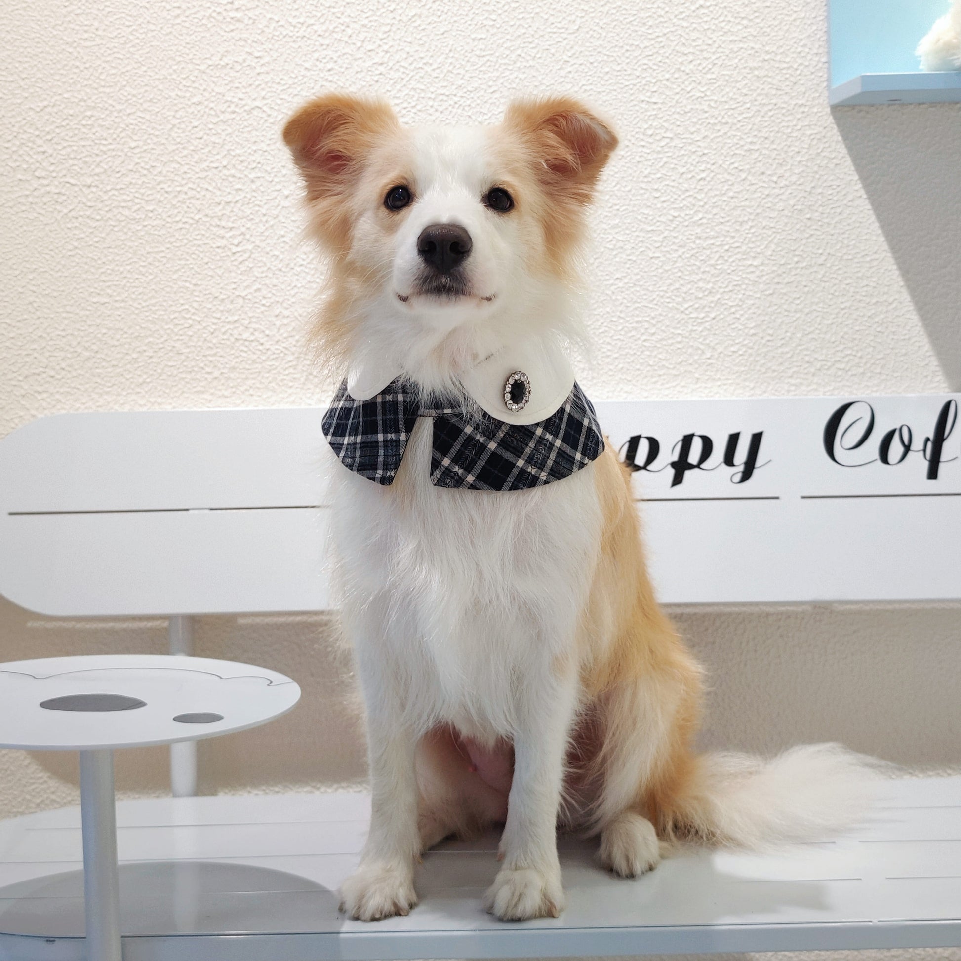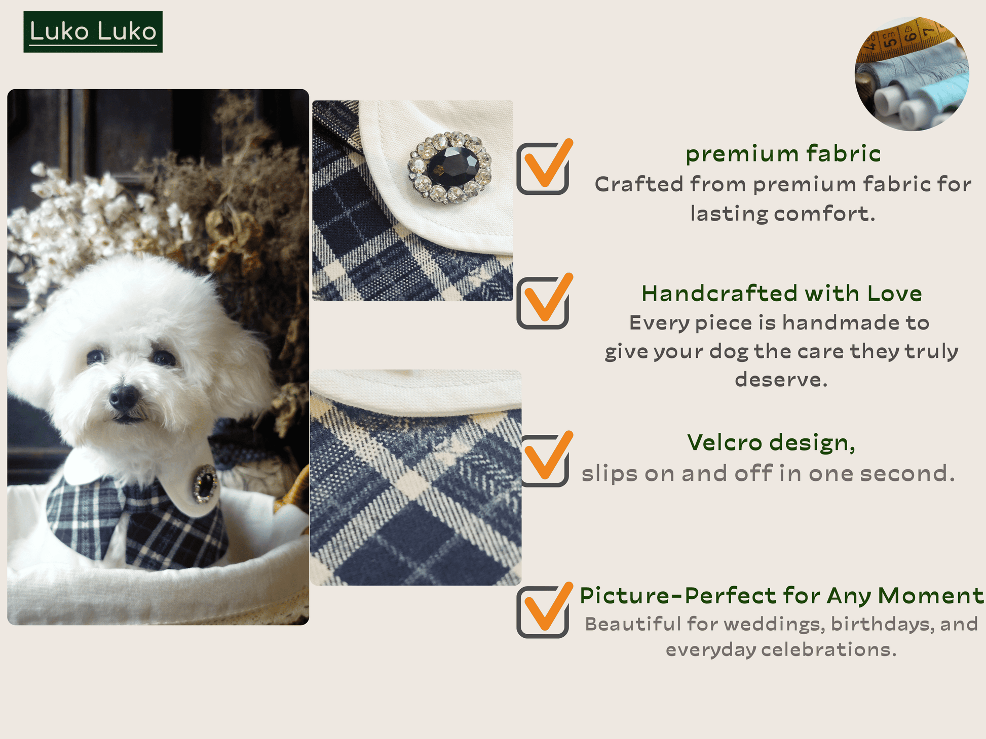 Embrace timeless elegance with the Sophie Cape Bandana, where French refinement meets effortless charm. Featuring a crisp white collar, deep navy plaid, and a detachable design that pairs beautifully with our selection of decorative brooches (sold separately), this piece captures the grace of Parisian style.